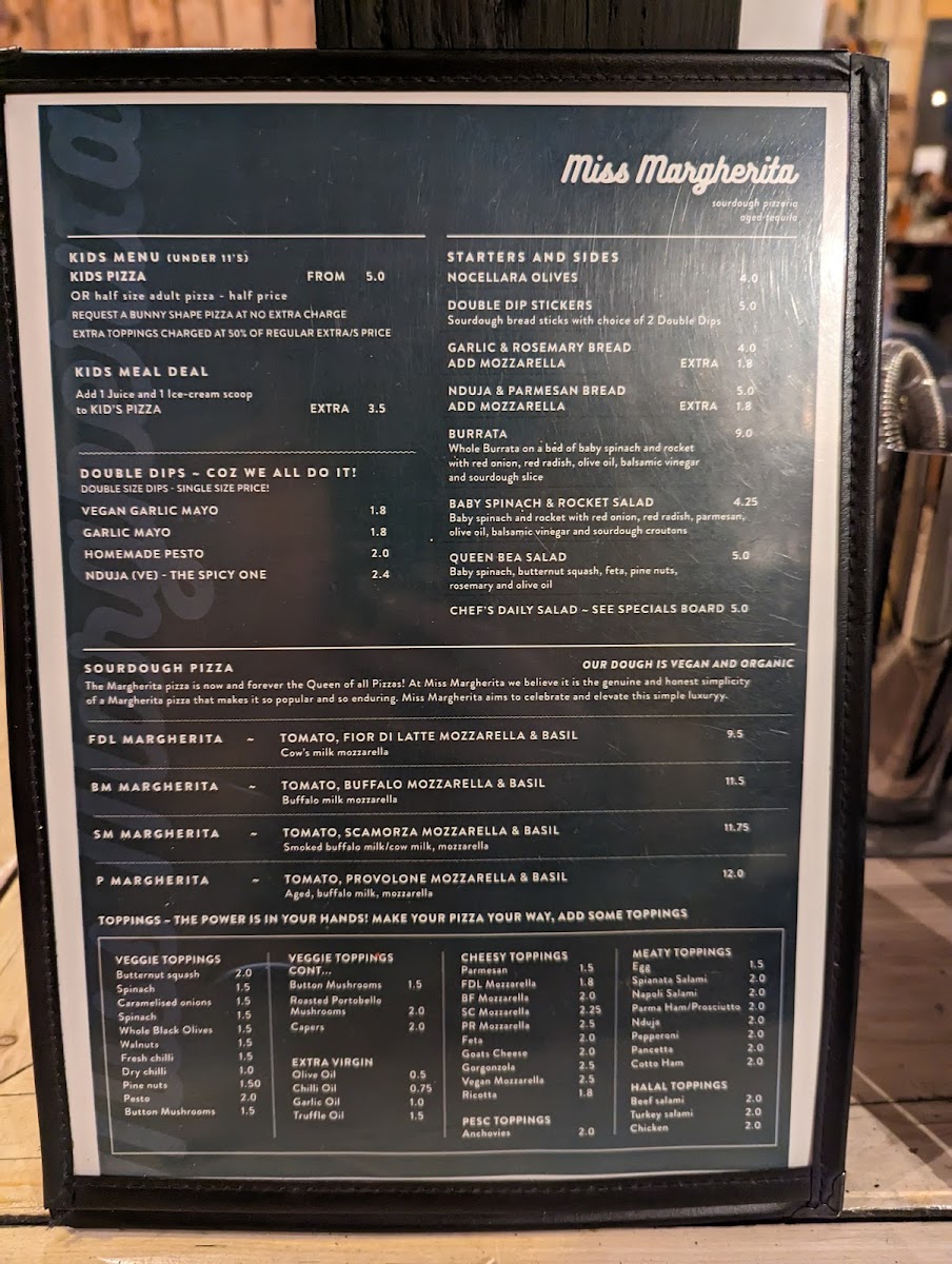 Introducing the Menu at Miss Margherita - Sourdough Pizzeria
